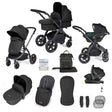 Ickle Bubba Stomp Luxe 12 Piece Travel System with i-Size Stratus Car Seat & Base - Black/Midnight/Black