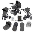 Ickle Bubba Stomp Luxe 9 Piece Pram Bundle - Silver/Charcoal Grey/Black