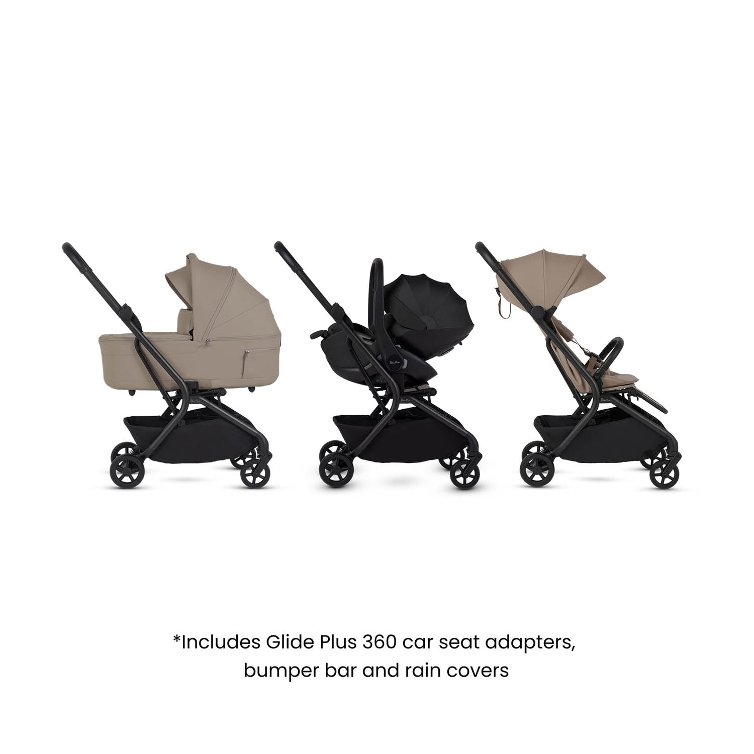 • Car seat compatible with Glide Plus 360 adapters included. Additional universal adapters sold separately to pair with a car seat of your choice